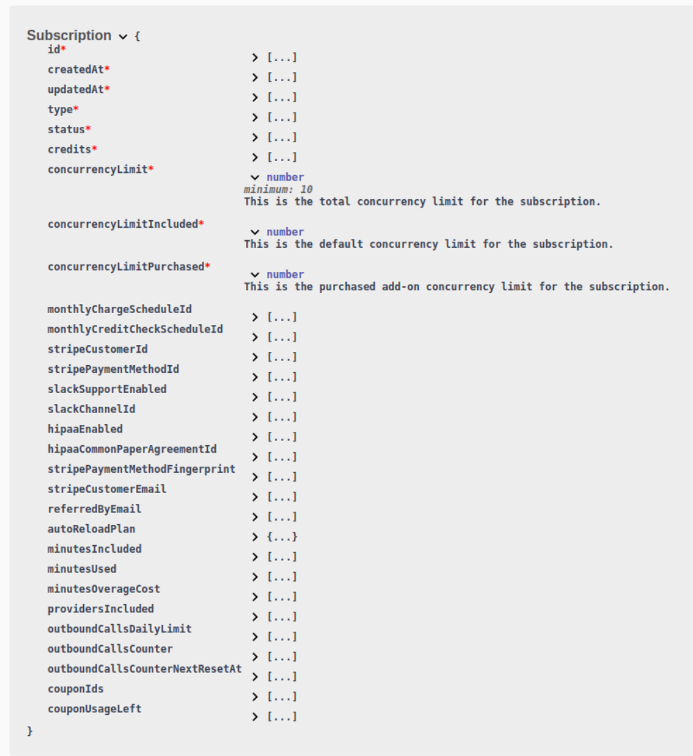 Subscription.concurrencyLimitnow shows both the included and purchased limits, which better represents the total concurrency limit. Refer to the Subscription schema for more details.