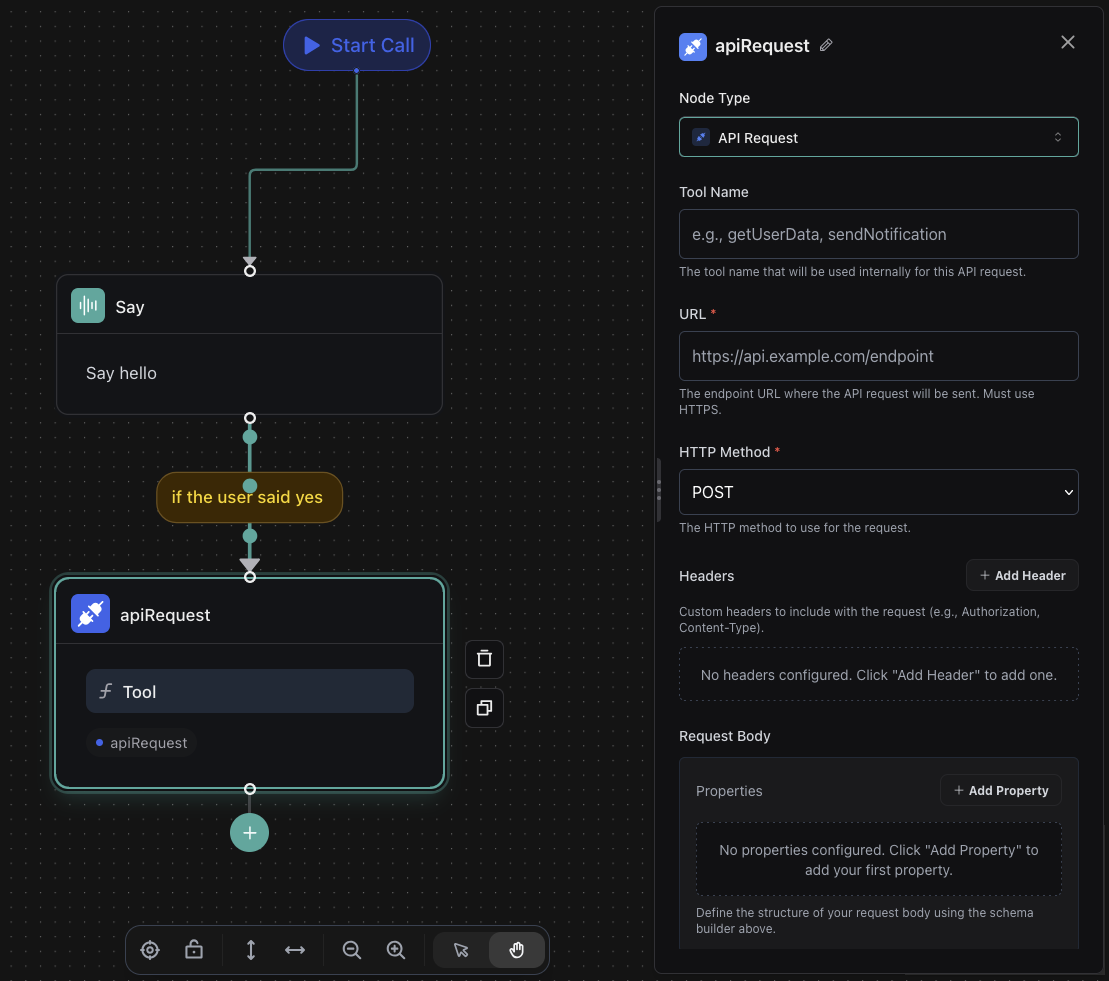 - API Request Tool: You can now create API request tools that allow the assistant to make REST API calls during conversations