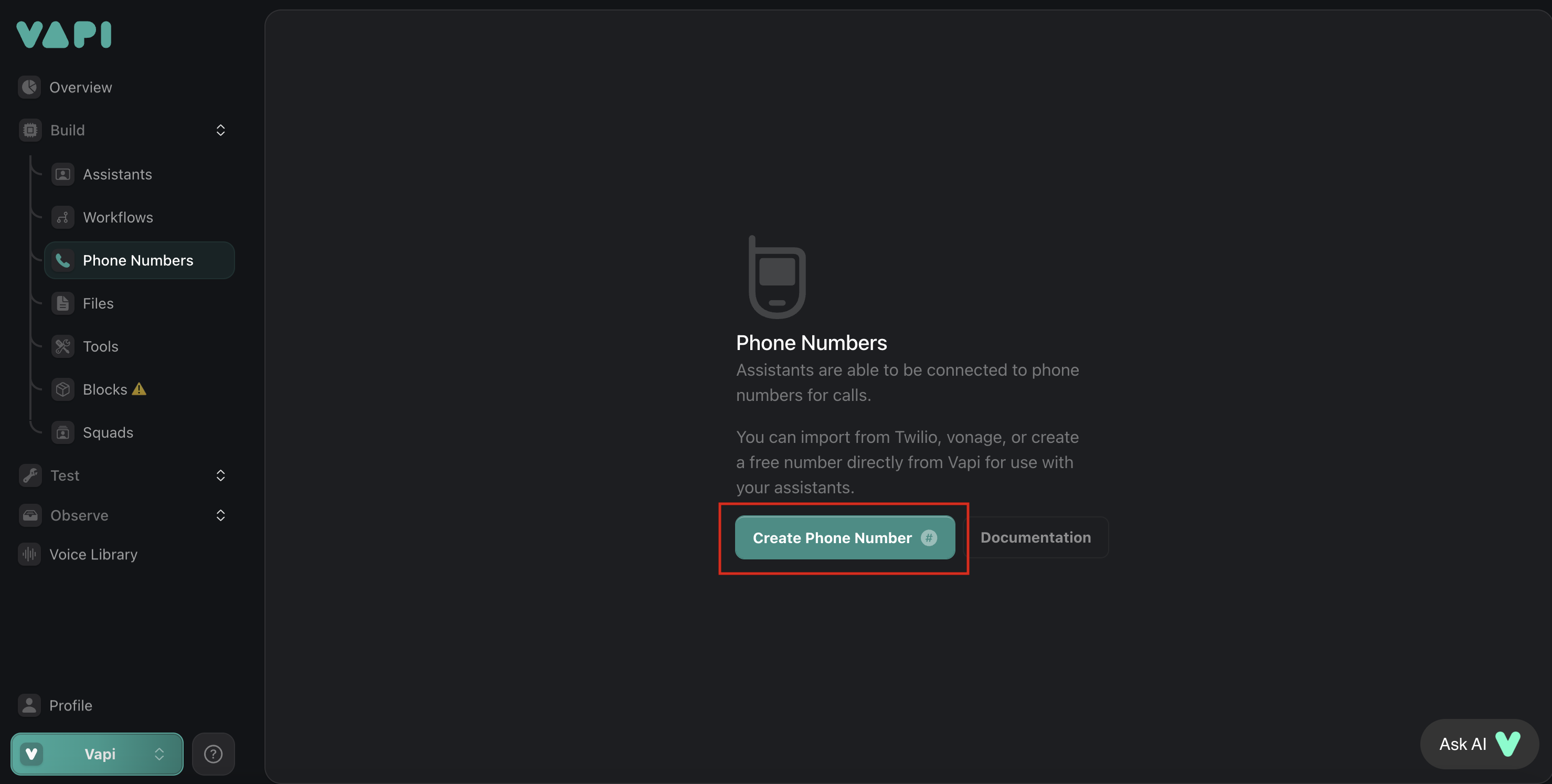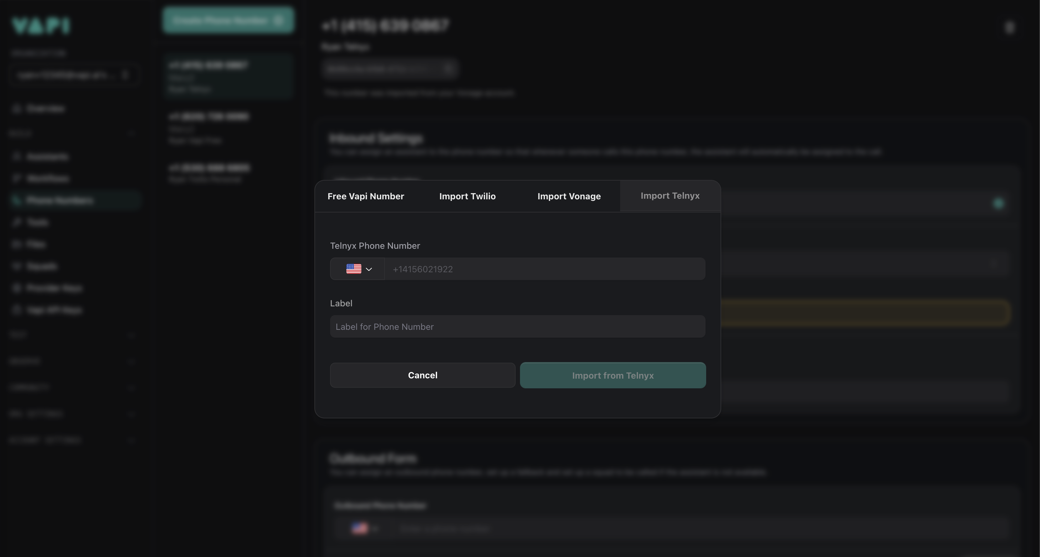 Import and use your Telnyx numbers with Vapi
